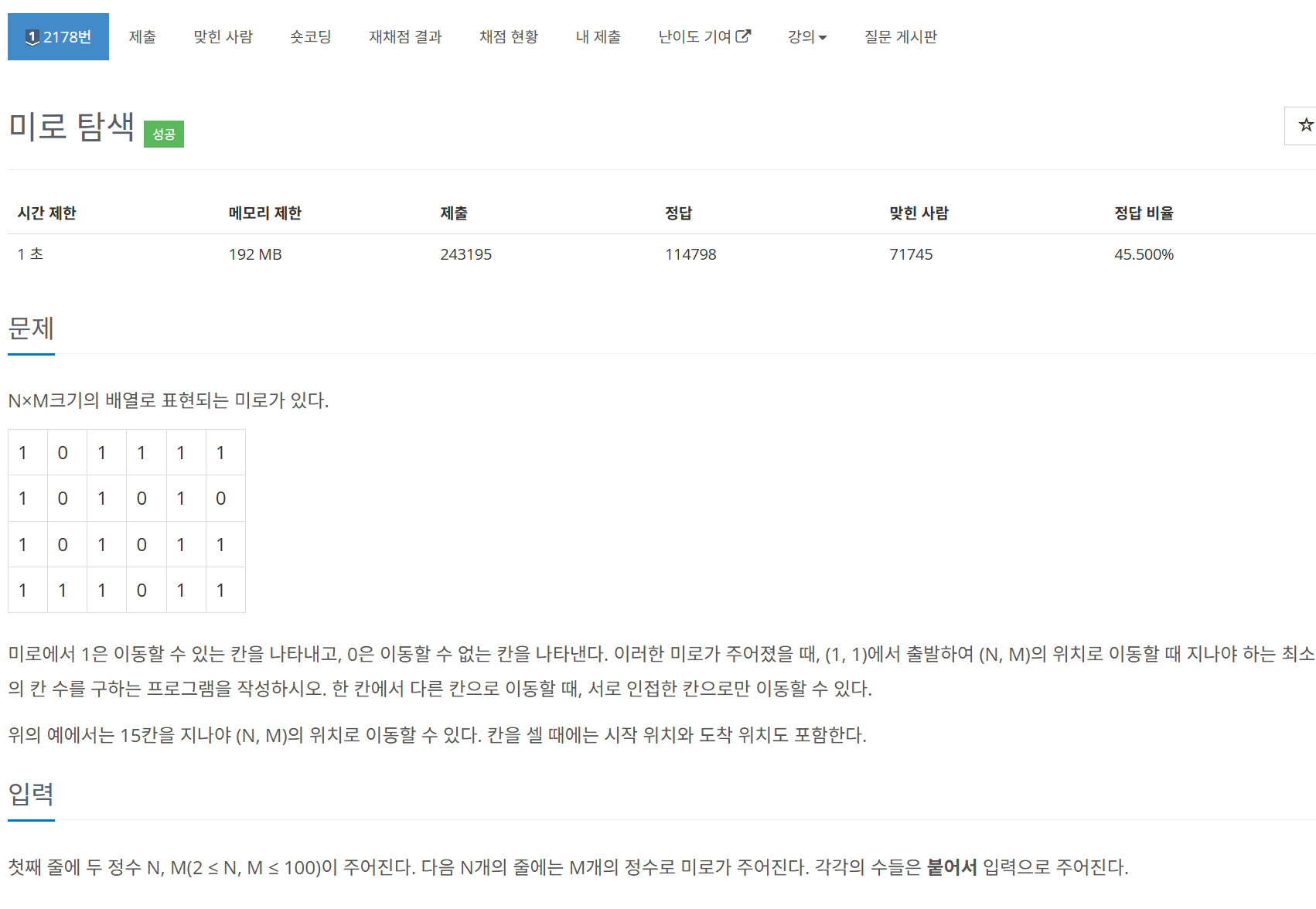 [백준]2178: 미로 탐색 (BFS 풀이) 본문