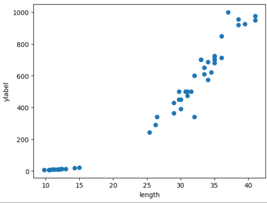 도미와 빙어를 길이에 따라 무게 예측을 하는 머신러닝 과정을 정리해보겠다. k-최근접 이웃 알고리즘을 사용한.
